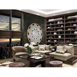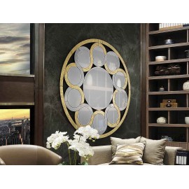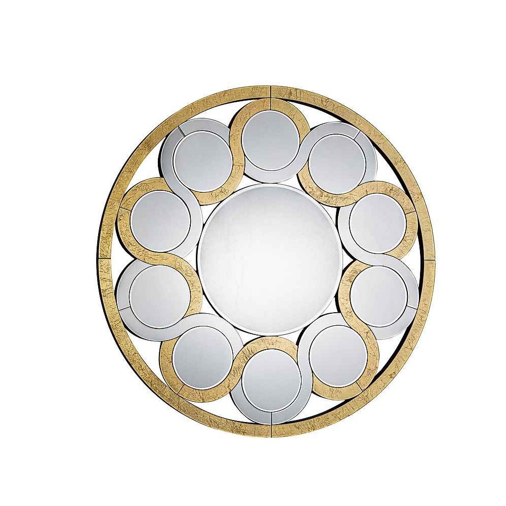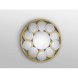 Mirror with central bised moon. Greca of moons and crystals with background in PAN DE ORO, bezelados. Black lacquered DM backyard.