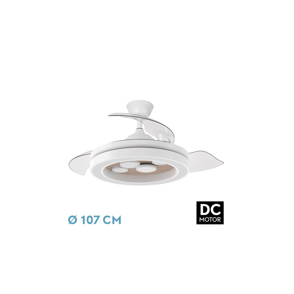 CUPIDO Series DC Ventilator made of metal, polycarbonate and ABS, in BLANCO/HAYA colour with three very resistant transparent ABS DISPLEGABLE handles.