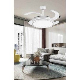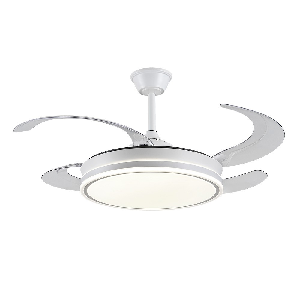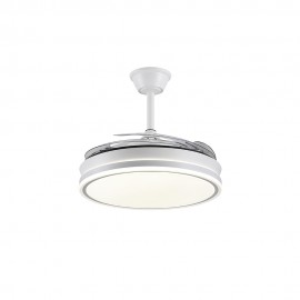 AMBRA XL built-in LED ceiling fan in white finish with four very transparent methacrylate dampening blades. It is equipped with DC motor and six speeds.