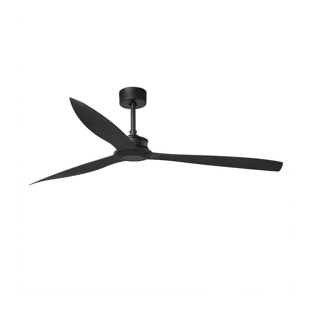Big version of JUST FAN. This modern ceiling fan is ideal for stays from 28m2. Accessed by remote control, included, and in black finish with black shovels.