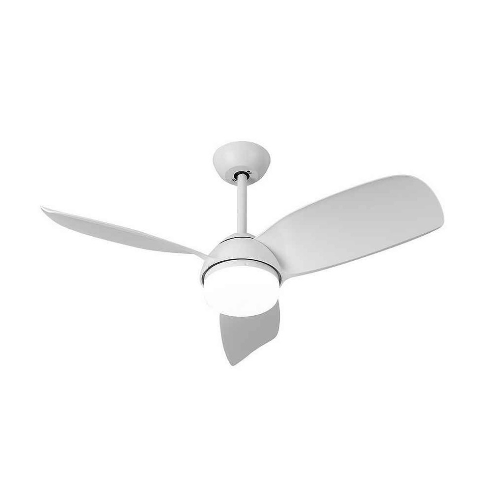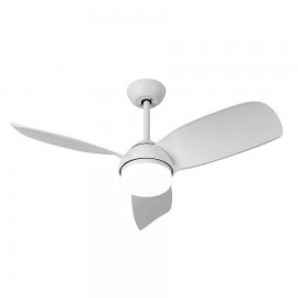 BLANCO series DC Haur fan with 3 blades. Made of metal, MDF and polycarbonate. It has a 38/50 measure,5x107x107 inches. LED technology integrated with a 24W power, with 3 LUZ REGULABLE TEMPERATURES (3000-4000-6000K) and 2950 lumens.