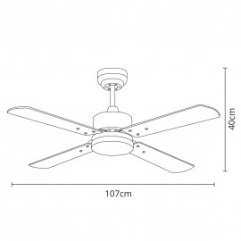 DC KENIA white fan D.107cm 4 reversible blades, with LED 18W 1800lm 3000-4000-6500K.