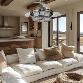 Modern design thanks to its drop-down handles, but very in line with several styles of decoration from the classic to the Frame House or even the Vintage, its completion reminds us of the glass lamps packed, resulting in a very decorative element for living rooms, bedrooms, dining rooms and working areas, which can be used together or indistinctly as a lamp or fan depending on the needs of the stay.