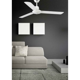 Ventilator model INDUS without light, 120 cm. diameter, 32 cm. height, with body and 3 blades in white finished steel. It is operated by wall regulator and has 3 speeds.