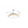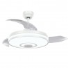 MINA L MUSIC built-in LED ceiling fan in white finish with four highly resistant, transparent methacrylate blades. It is equipped with DC motor and six speeds.