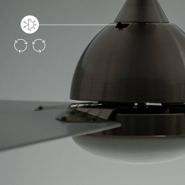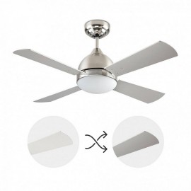 Steel material finished nickel satin, with diffuser glass opal, and 3 blades in plywood reversible in white-plated finishes