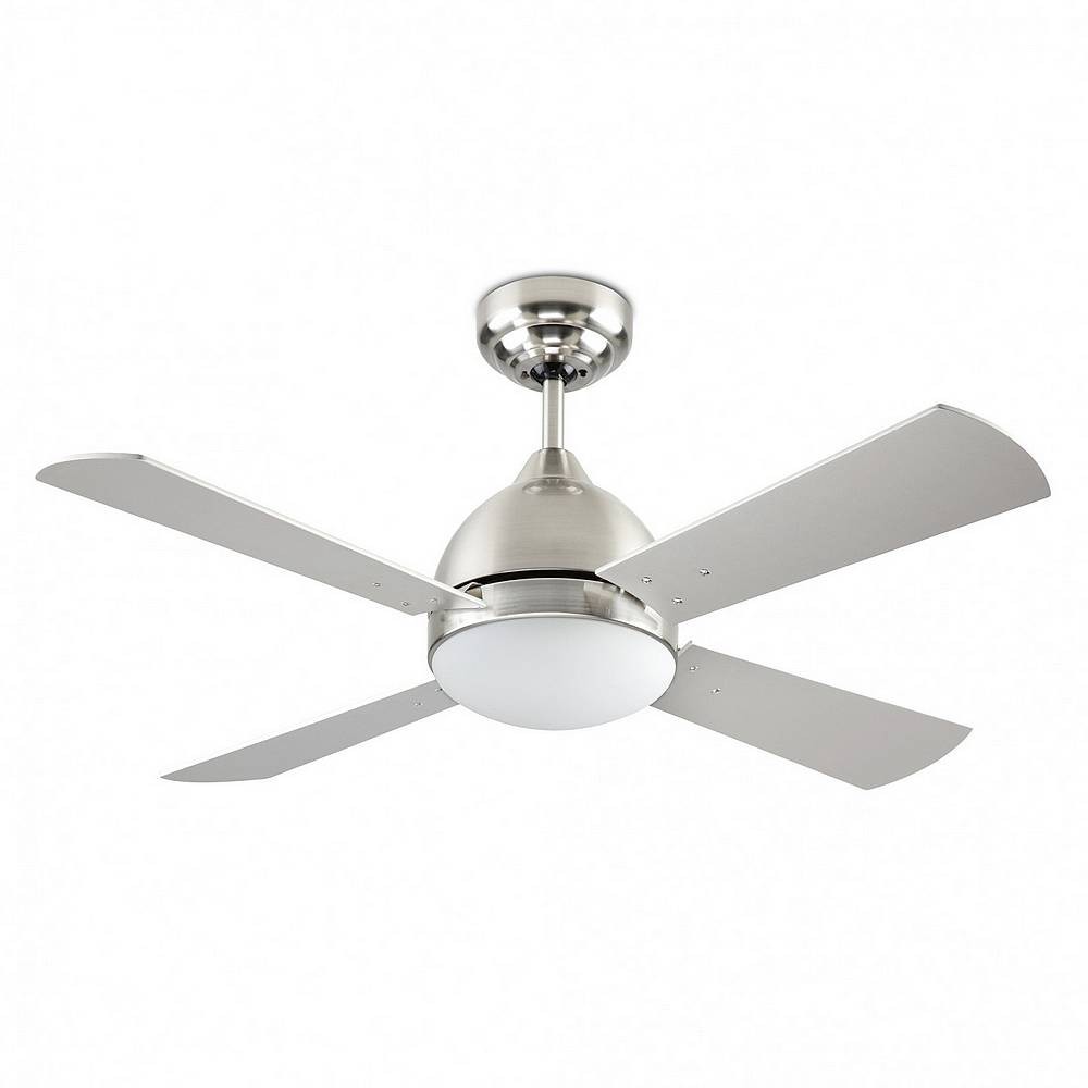 Ceiling fan with light model BORNEO of measurements 106cm of diameter and 39 cm of height, made in finished nickel satin metal, with opal glass tulip, and 4 bladed blades reversible white-plated wood. It has 3-speed AC engine with a power of 12-21-40 w andRpm 100-145-185.