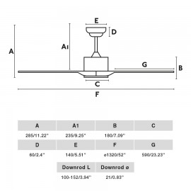 This fan size "L" is ideal for stays between 17.6 and 28 m2 as it has a diameter of Ø132-164cm.