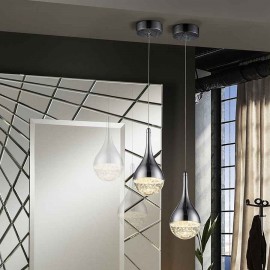 1-light ELIE Pendant, in chrome-finished metal with tulip shaped like a glass drop with decorative bubbles inside. It has LED technology integrated 5W, 3000K, 400 lm.