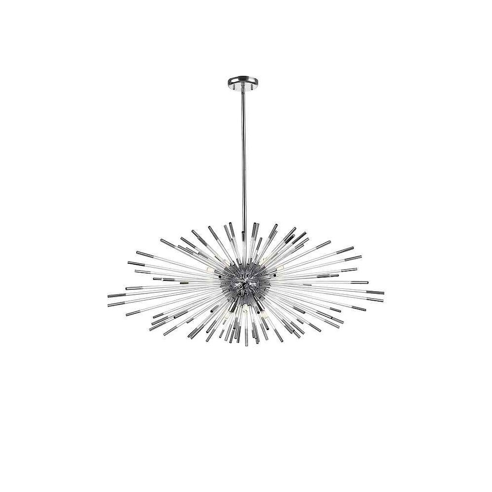 Spheroidal-shaped EVASION Lamp made in finished metal Chrome with transparent glass radial rods with the ends decorated in chromed finish.