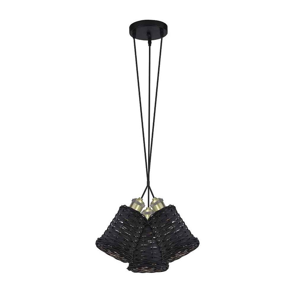 3 black lights Pendant with black wicker display model ALEXIA