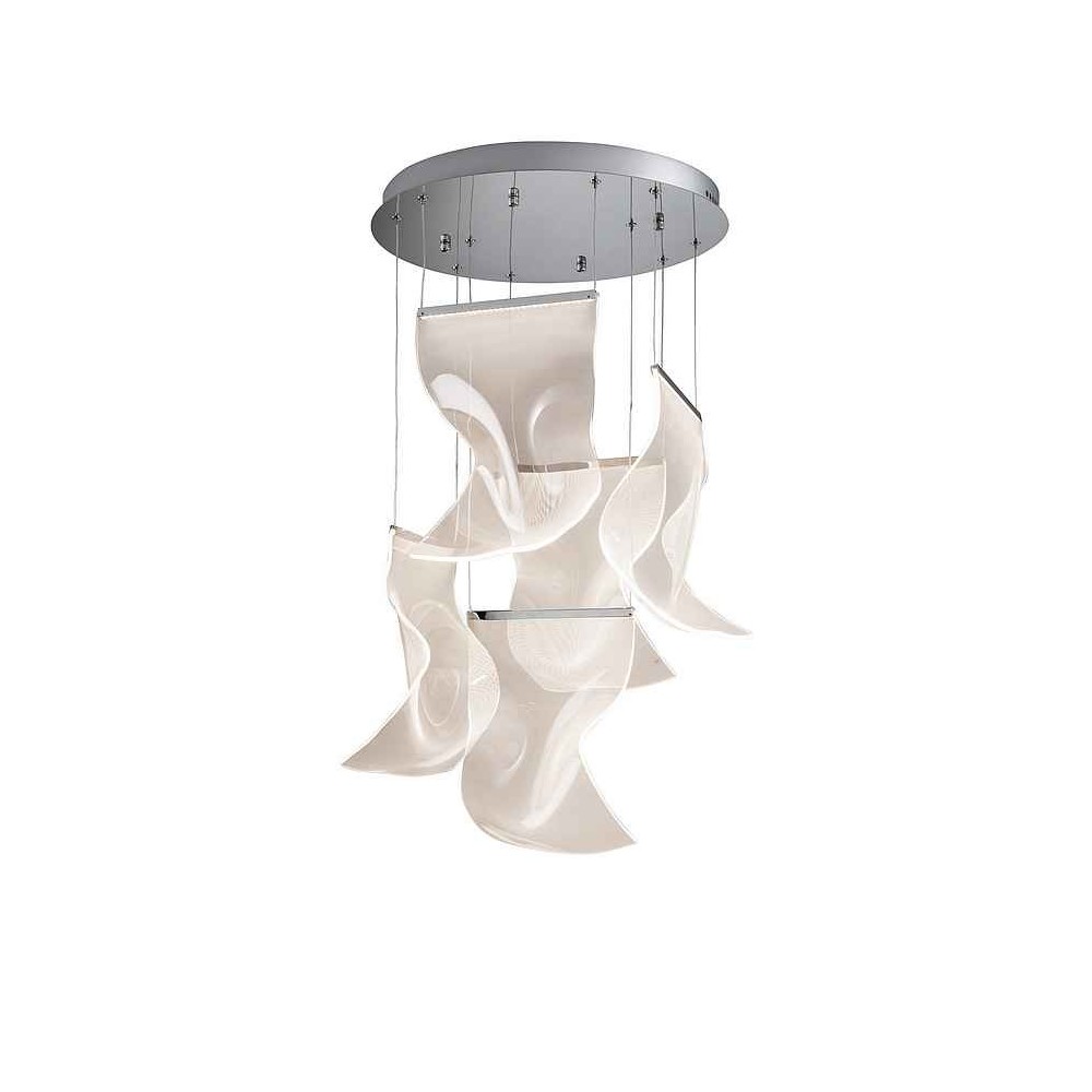 The VELOS II LED lamp made of chromed metal, and moulded micro-printed metacrilate tulips. LED lighting 30W 1.500lm 3,000K