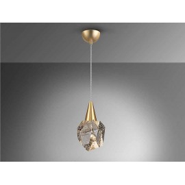 1 LED lamp model AQUARIA, made of gold-finished metal, with polyester tulip made of solid glass with decorative bubbles inside. Replaceable in height. Lighting 4W LED. 450 lm. 3,000 K.