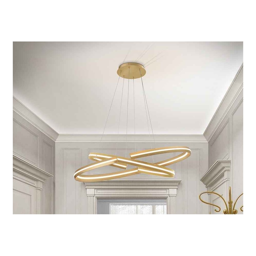 LED light ceiling lamp, made of two ellipses, made of metal and aluminum, brushed gold finish. Opal acrylic diffuser. 58W LED, 2.700 lm, 3,000 K.