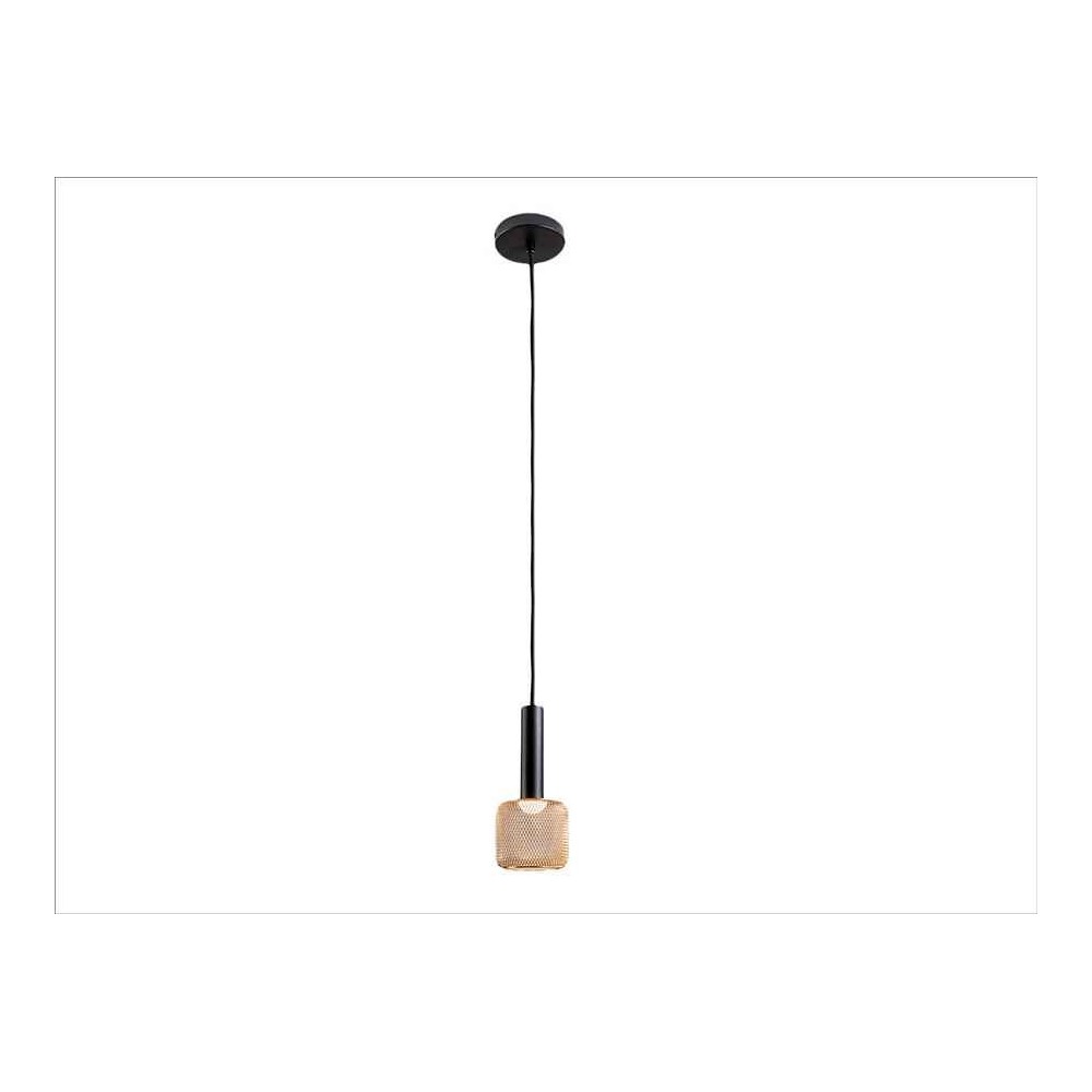 1 light LED Pendant Model SINCRO, made of matt black metal and metal mesh tulip gold gloss, opal acrylic diffuser. 5W LED, 450 lm, 3,000 K. DIMABLE.