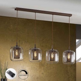 4-light linear lamp model FOX, made of lacquered metal, chocolate color. Double tulip, metal mesh interior and glass exterior. DIMABLE. Includes remote control.