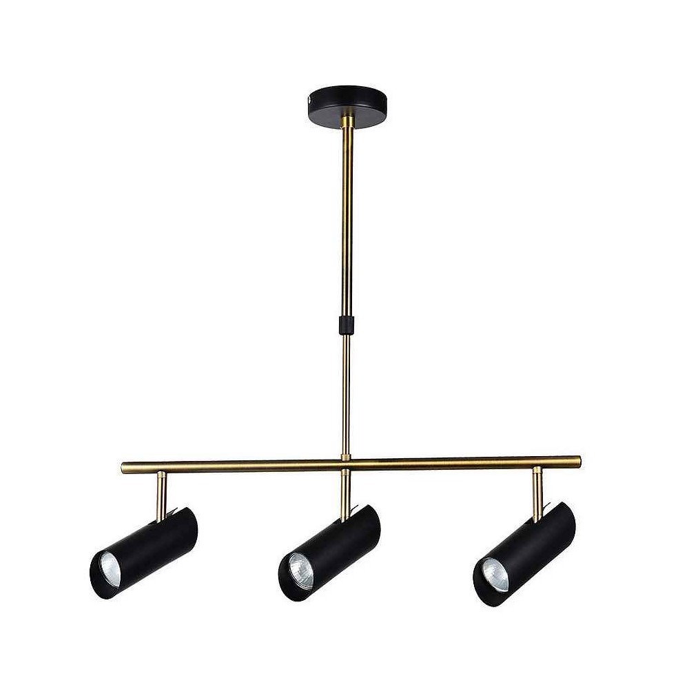 MARRAKECH series three-light lamp in NEGRO/ORO color. Made in metal, with modern design, it consists of three ORIENTABLE foci that are arranged in linear form from the central body, allowing to direct the light to the area that most interest the stay that decores. Ideal for living rooms, dining rooms and even working areas that match Modern, Vintage and new Industrial style decorations. It has three GU10 lamp holders. Not included bulbs.