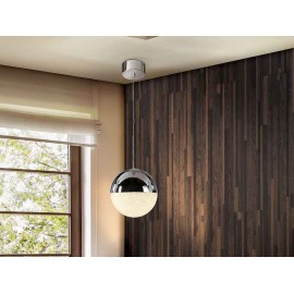 1 light Pendant model SPHERE, made in chrome finish metal with spherical tulip of 20 cm. of metal and polycarbonate with textured interior.