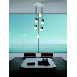 ...Six-light Pendant of the NARCISO series in NIQUEL color.
