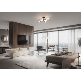Semiplafon of 7 lights CELLAR model in black with spherical opal crystal...