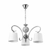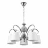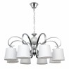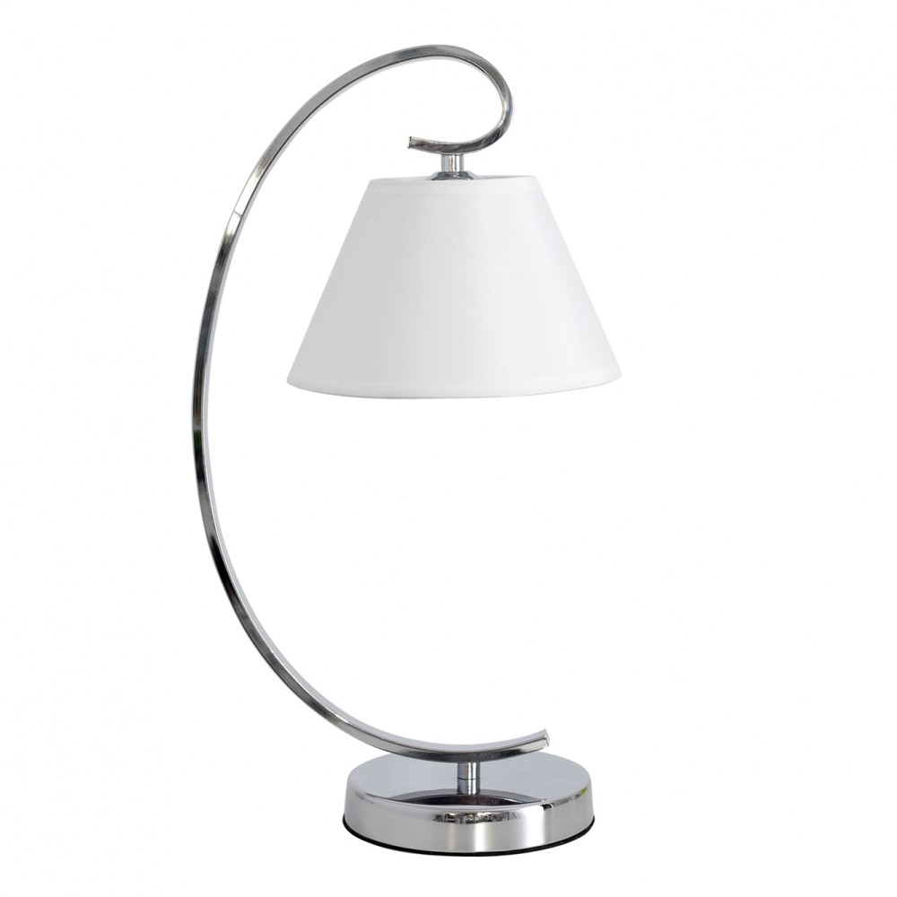 Lamp Overmese series Chrome color concordia with white screen. It is made of metal and textile material. Its dimensions are 47x20x26 cm. It presents a curved body with a conical display. The portal is E27. Also available is the appliance, eight light bulb, five lights and three chrome lights.
