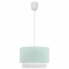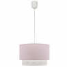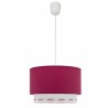 Lamp Overmese series TYZOS pink and white frame. Its diameter is 17 cm and as well as the pendant, it plays with small threads pink in all its perimeter. It has an E14 lamp.