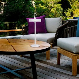 LED surface for interior and exterior, portable display with silicone handle and magnetic support. Made of white finished metal and opal acrylic diffuser. 2.5W LED, 140lm, 3000K. DIMABLE. IP54.