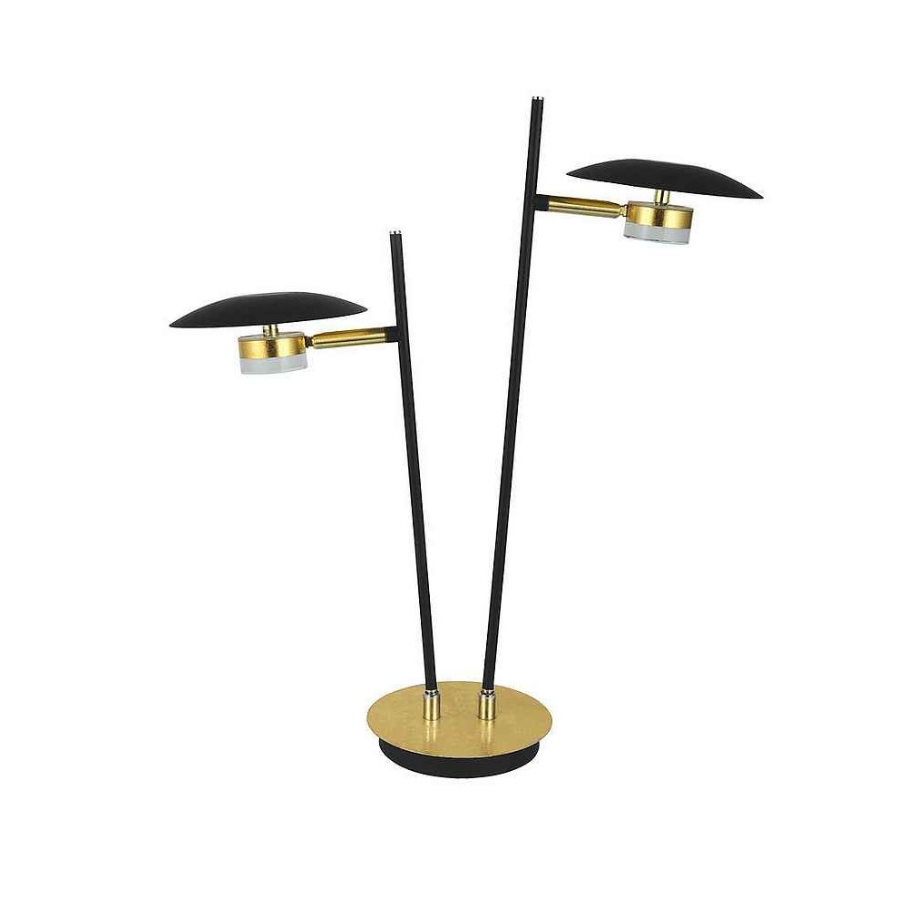 Two-light Surroundings Series Black-gold CABO CITY. It is composed of two DIRIGIBLES arms, made in metal, which are born from a central base, with a kind of also metal screens that crown the ORIENTABLE bulbs, and can direct the light directly to the area that you prefer to illuminate.