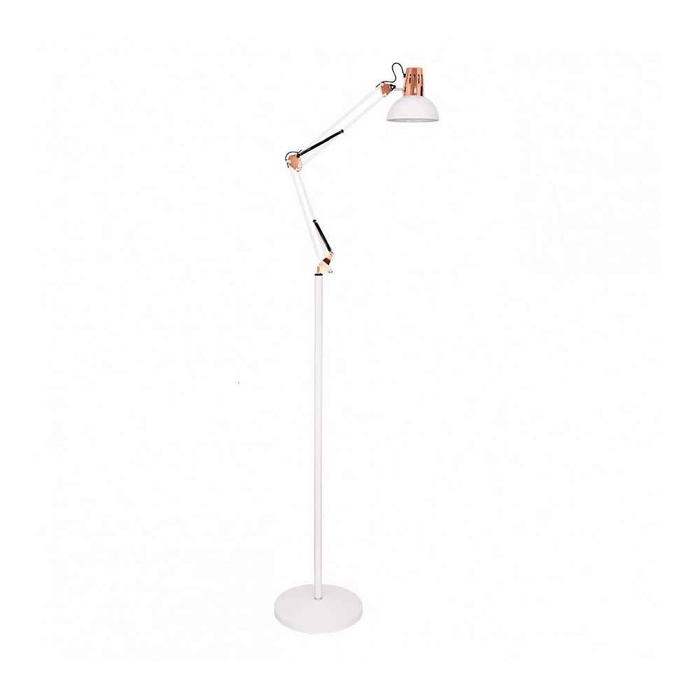 Foot Flex of the RUTILO series in WHITE/COBRE color. Elegant and simple design made in metal, making it strong and resistant. With articulated foot and folding head making it possible to guide the light where it is required directly or indirectly. It has an E27 lamp. Not included bulb. It is ideal for offices, studios, waiting rooms and even rooms decorated with the new rustic-vintage style. Very decorative. It has a adjustable height of 147