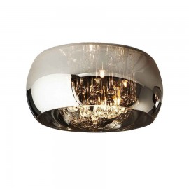 Plafon model ARGOS made of chrome finish metal. Clear glass tulip. Interior tears of muranous glass. DIMABLE. Includes remote control.