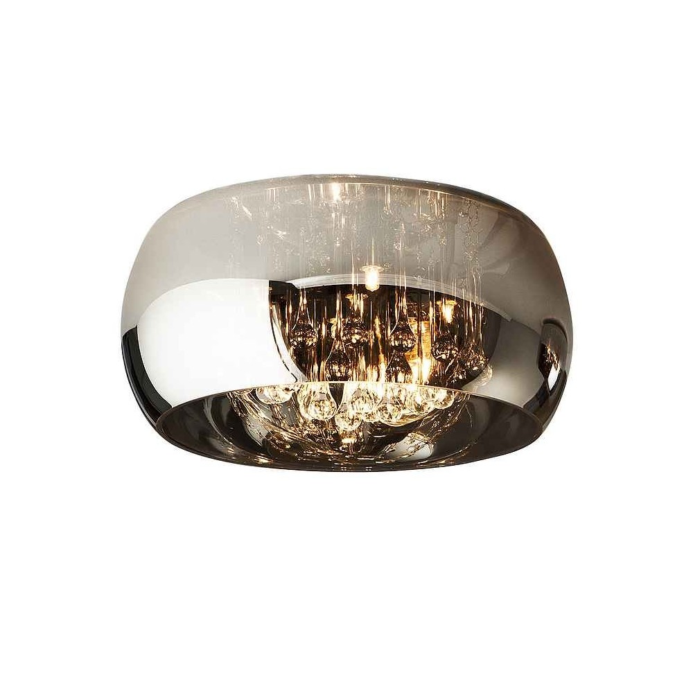 Plafon model ARGOS made of chrome finish metal. Clear glass tulip. Interior tears of muranous glass. DIMABLE. Includes remote control. Dimensions: 40,0 23,0 cm Weight: 4.5 Kg This product includes led drivers with 0-10V or PWM dim, a receiver and a radio frequency remote control.