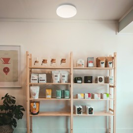 The dimensions of this model are 3.7 cm high, 30 cm diameter, white. The low light temperature of 3000K produces a warm and comfortable light. Traditionally used in living rooms, bedrooms or dining room and living room. This model contains 1 LED module with a power of 48W.