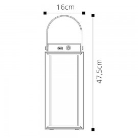 Dans la section Extérieure, nous présentons l'article sur la KAYLA. Les dimensions de ce modèle d'enveloppe (éclairage réglable, chargeur et câble USB) sont de 15 cm de hauteur, 10,2 cm de diamètre, en noir (IP54). Il a une luminosité de 200 Lúmenes. Ce modèle contient 1 module LED 2W. Avec ce modèle adapté à l'extérieur grâce à votre IP, nous pouvons avoir un point lumineux supplémentaire n'importe où, car nous pouvons le recharger en le branchant sur le réseau électrique, ou il peut être chargé avec la lumière du soleil, grâce au panneau solaire qu'il a intégré.
