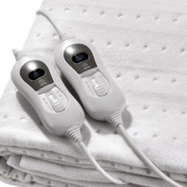 Chauffage électrique DUO réglable de la série BIENESTAR en blanc, pour lits doubles. Fabriqué en matière textile très confortable et agréable au toucher qui aide à se détendre. Il a une puissance de 120 watts, pouvant ajuster la température avec deux contrôleurs, idéal pour deux personnes et maintenir les deux zones de lit séparées avec 3 niveaux de chaleur, chacun peut augmenter ou diminuer sa température optimale sans déranger votre partenaire.
