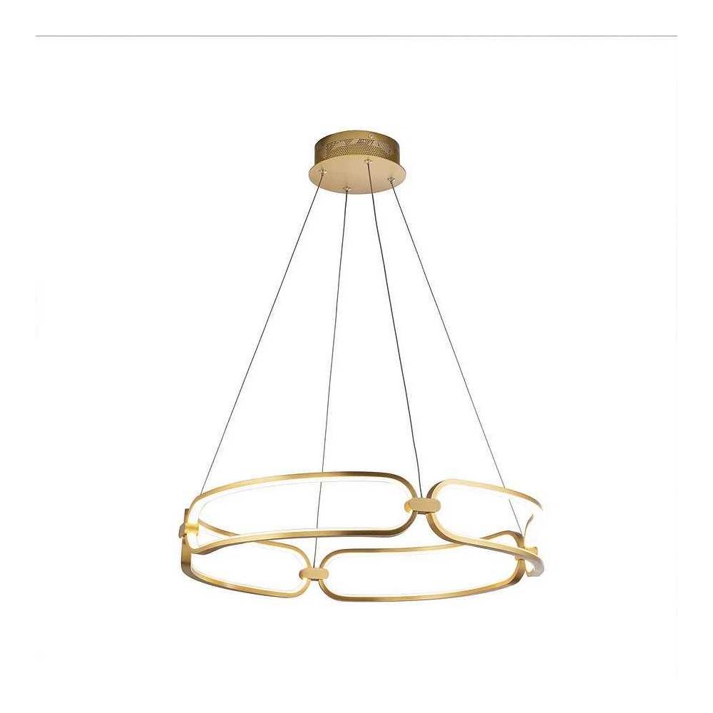 Nouveauté, lampe circulaire avec formes géométriques Modèle Colette avec LED intégré 54W 3000K, 4860 lm, en aluminium fini en or avec des bandes à LED recouvertes de diffuseurs en silicone opale. Des mesures 60x10 cm.