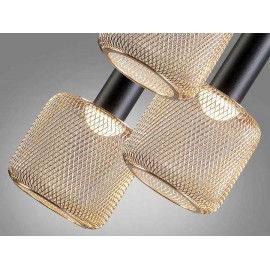 Lampe LED 3 lumière modèle SINCRO, en métal noir mat et métal tulip or brillant, diffuseur acrylique opal. 15W LED, 1.350 lm, 3,000 K. DIMABLE.