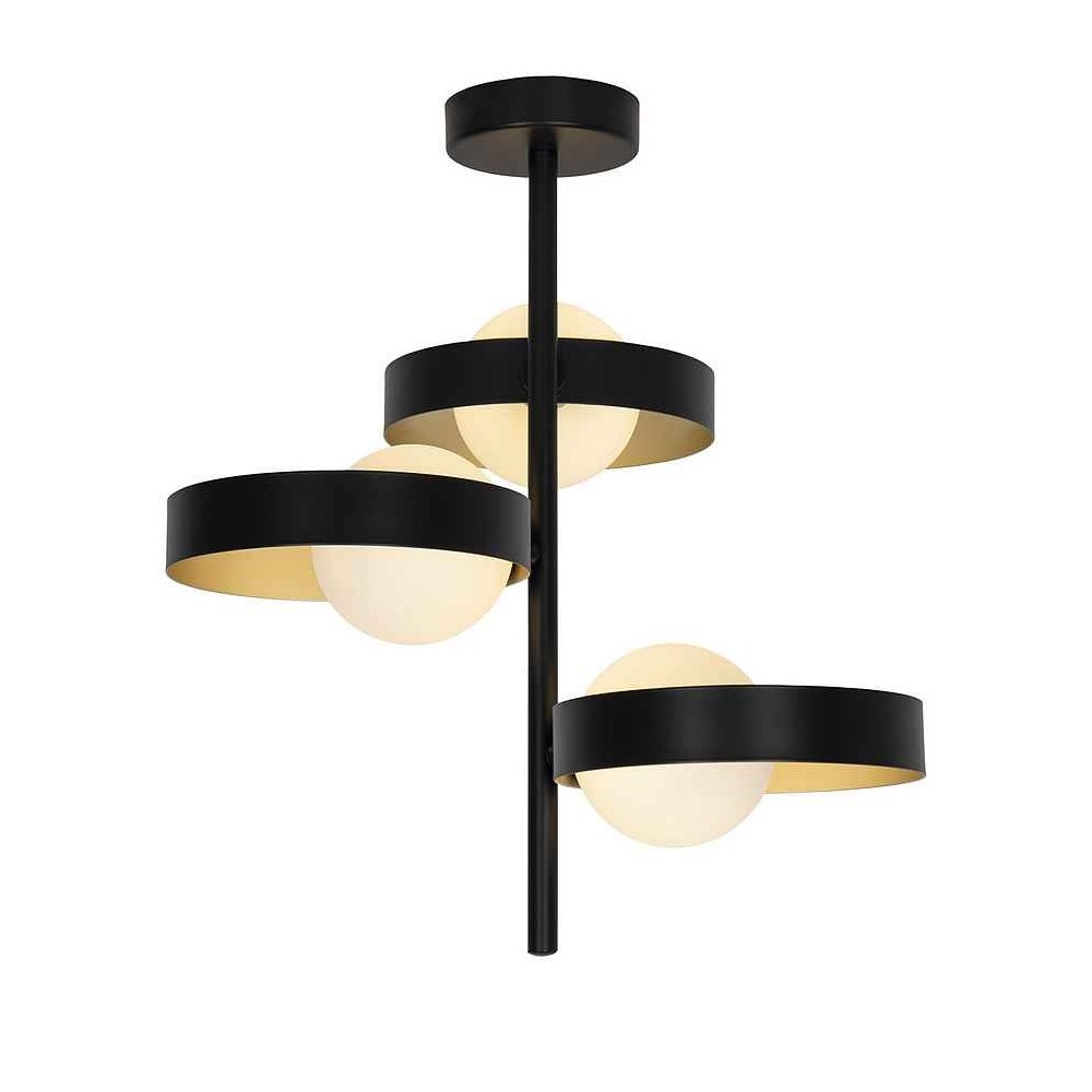 3 lampes modèle ARIANNA en métal noir fini avec l'intérieur des anneaux décoratifs luminiques en couleur or, et avec tulipe sphérique en verre opal. Éclairage pour ampoule G-9