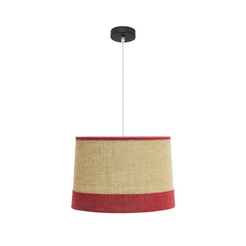 Pendentif série TIETAR avec affichage de couleur SACO/ROJO et perndel dans NEGRO/BLANCO. Fabriqué en métal et textile. Fait ressortir son écran fait avec le tissu sac combiné avec le lin rayé. Design compatible avec de nombreux styles de décoration, de rustique à vintage, idéal pour s'illuminer dans les chambres, les salons, les bureaux et les salons. Il a une lampe E27. Pas inclus ampoule. Sa dimension réglable en hauteur est 35