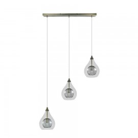 Pendentif trois lumières série LHASA en couleur cuir. Fait de métal, avec doubles tulipes de verre et de métal suspendus à différentes hauteurs entraînant une belle conception. Idéal pour les décorations modernes des salons, des salons et même des espaces de travail. Il a trois lampes G9. Pas inclus des ampoules. Sa dimension est réglable en hauteur de 30