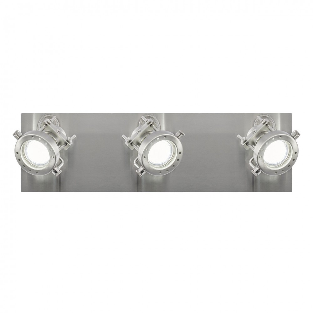 Modèle OLBIA 3 lumières, en satin de métal nickelé avec des focis de style industriel qui illumine par l'ampoule GU 10, adapté pour LED, (mais non inclus).