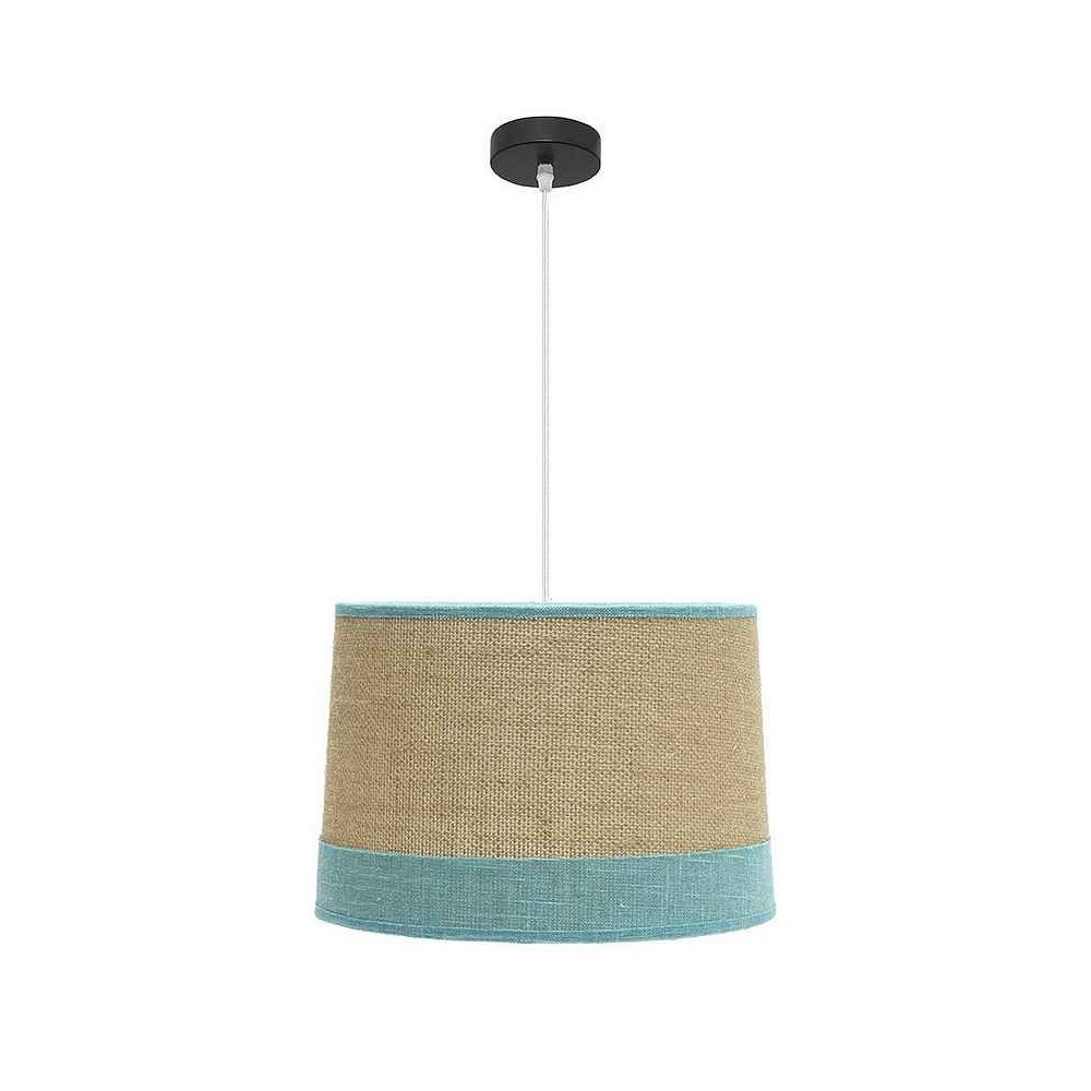Pendentif série TIETAR avec affichage de couleur SACO/TURQUESA et perndèle dans NEGRO/BLANCO. Fabriqué en métal et textile. Fait ressortir son écran fait avec le tissu sac combiné avec le lin rayé. Design compatible avec de nombreux styles de décoration, de rustique à vintage, idéal pour s'illuminer dans les chambres, les salons, les bureaux et les salons. Il a une lampe E27. Pas inclus ampoule. Sa dimension réglable en hauteur est 35