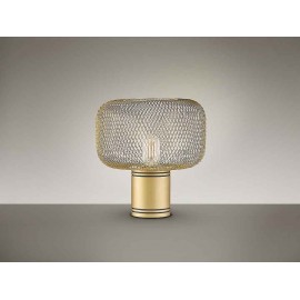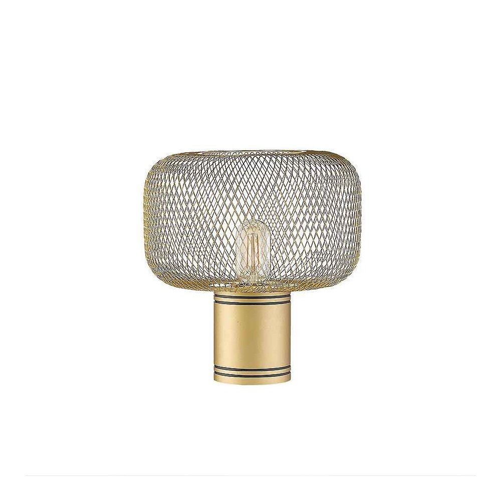 Lampe de surface de 1 lumière, sa base est cylindrique de métal finition or, avec un écran métallique en métal métallique finition or, a une hauteur de 30 cm et un diamètre de 28 cm.