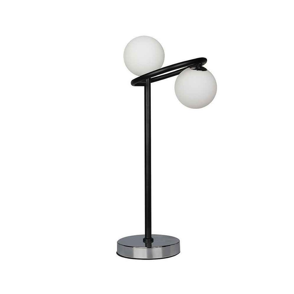 Surface en deux feux de la série LA HABANA de couleur NEGRO/CROMO avec deux tulipes blanches. Design original et moderne avec corps métallique et tulipes en verre blanc.