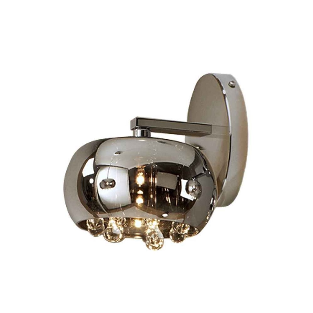 Dimensions: 22,0 20,0 27,0 cm Poids: 1,3 kg CLASSE D'ÉNERGIE: A + CLASSE ELECTRICE: Classe 1 Puissance maximale: 53W Tension: 110/220 V Fréquence: 50/60 Hz Flux lumineux: 550 lm -wall lampe en métal 1 lumière de lumière, chrome. Tableau de verre scintillée. Crosses cristal à l'intérieur, style de Murano.-