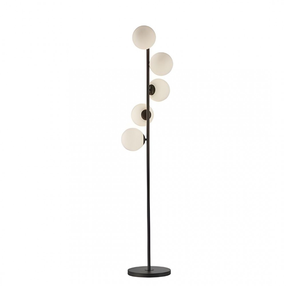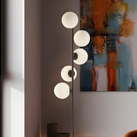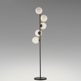 Lampe de pied en métal, finition noire mat. Tulipes sphériques en cristal d'acide opal.