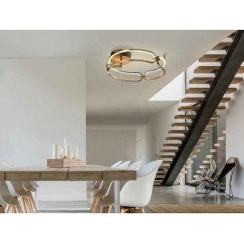 Petit panneau de plafond LED COLETTE, en aluminium brossé, plaqué or avec bandes de led recouvertes de diffuseurs en silicone opal. Éclairage LED LED LED intégrée, 3,330 lm, 3 000 K.