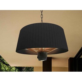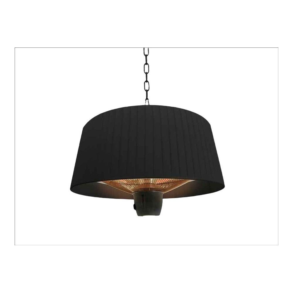 HEAT Je cuisinière électrique pour installation au plafond, type de suspension. Fait en métal et plastique, finition noire. Écran textile plaqué noir. Chauffage halogène de 600/900/1500W. 1W LED Light. Télécommande. Câble: 1,8 m. IP44