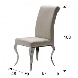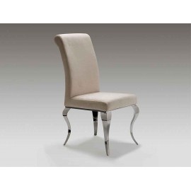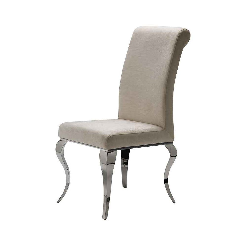 Chaise de modèle Barroque des prestigieuses signes Schuller en acier inoxydable avec des pieds de style Isabeline et rembourré en tissu.