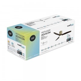 Ventilateur de plafond avec éclairage LED AGUILON LED modèle avec moteur DC, en métal, bois et polycarbonate, en couleur CUERO avec trois poignées colorées ROBLE.