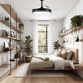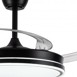 Ce modèle de ventilateur a un design moderne et grâce à son format, avec des lames pliantes, nous pouvons l'utiliser comme lampe tout au long de l'année, en plus de pouvoir choisir le type de lumière qui nous intéresse le plus à chaque moment, qu'il soit chaud-neutra-fria.